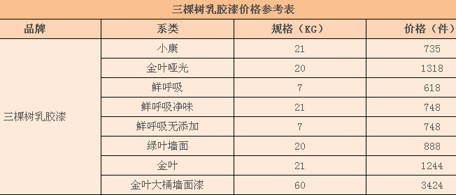 三棵樹乳膠漆大致分為三棵樹玉葉、原生態(tài)啞光、隨易洗、鮮呼吸、樂居寶等等系列。