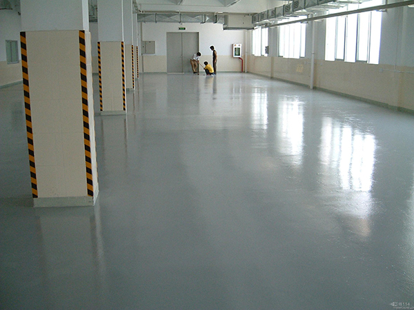 5、耐磨層:本工序可根據(jù)用戶需要選擇使用;溶劑型環(huán)氧面漆施工完畢12~24小時(shí)后,即固化至行人不留印跡后,用環(huán)氧耐磨層面漆滾涂一遍,可大大提高地坪光潔度和耐用性。