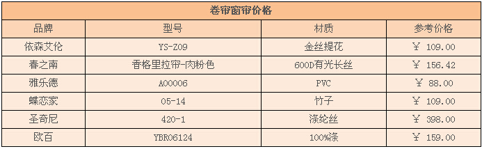 卷簾窗簾價格根據其制作的面料的不同而有差異,陽光面料制作的窗簾價格一般在85元/平米,并且這個價格配件也算在里面了;半遮光面料制作的窗簾價格稍微便宜一點,約55元/平米;全遮光面料窗簾價格普通一點的在65元/平米。總的來說,卷簾窗簾價格一般為70~350元/平米。