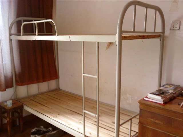 鐵架床一般宿舍用的比多,分為上下兩層。床基比較牢固,上下層設有扶梯以供上下,宿舍鐵架床的使用,合理的節約了空間。為學校公司節省了極大成本。宿舍鐵架床還有一種是單床但是是需要扶梯上去的,其是將床安裝在書架上方。這樣便利了日常生活。既可以學習也可以休息。