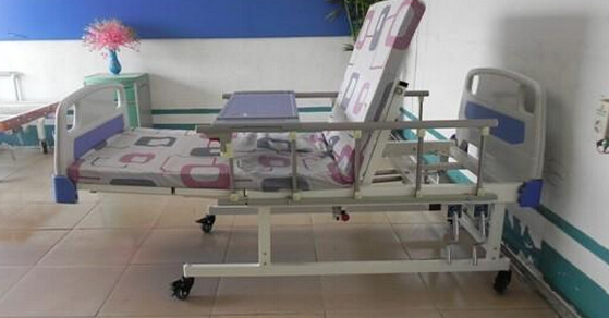 4、適合日常護(hù)理。可拆卸式床頭床尾,便于護(hù)理人員為使用者洗頭、洗腳、按摩等日常護(hù)理。多功能手搖護(hù)理床 多功能手搖護(hù)理床按搖桿的數(shù)量而定,一般可分為豪華多功能三搖護(hù)理床、二搖三折床及單搖床。它主要的特點(diǎn)在于搖桿裝置及可配置不同的配件,如帶便盆器、合理工藝設(shè)計(jì)及材質(zhì)的不同選擇等,一般適用于醫(yī)院住院部每個(gè)科室。