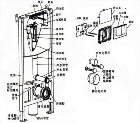 (5)入墻馬桶排水管安裝利用原坑位安裝隱蔽式水箱,連接水箱及排水管道的短管必須大于φ90,以防堵塞。