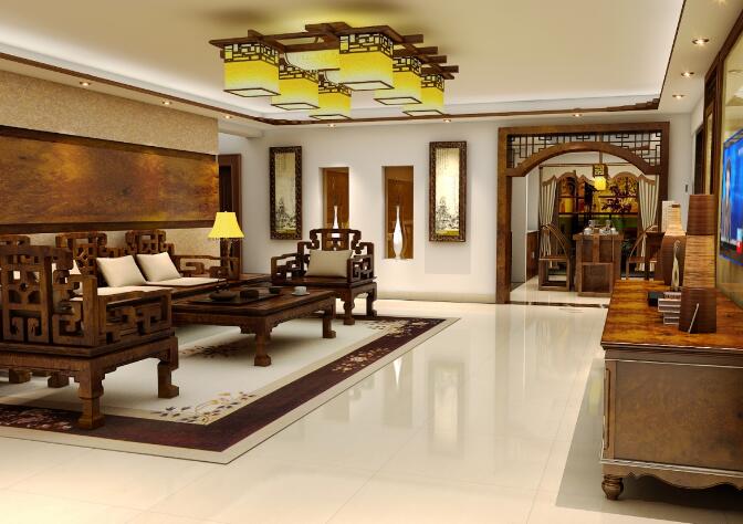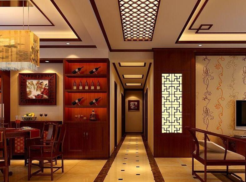 若想要房屋看起來比較豪華,則可以搭配家具的顏色,在環繞吊頂一周處安上木制鏤空雕花,加上燈光的渲染,一定會讓你的房屋看起來更豪華。若是客廳和書房處還有帶月洞門鏤空的博古架做隔斷,加上帶木制鏤空雕花的吊頂,不僅能讓房屋看起來豪華,還能讓房屋看著有強烈藝術美感和