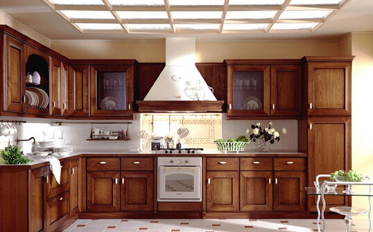? ? ? L型櫥柜只比一字型的多了一個轉角,但是千萬不要小看了這個轉角哦!因為只要我們好好利用起這個轉角,你在廚房烹飪時能增添不少歡樂!一般來說L型櫥柜在空間處理上都遵循著一個三角原則,簡單來說就是,如果把冰箱當成三角形的一邊的話,那么另外兩邊就分別是洗滌區與烹飪區,想象一下,在這樣一個廚房中做飯,從冰箱中取出食材轉身就可以清洗,再轉身又可以烹飪了,這點比起一字型櫥柜來說方便很多!既然說了優點,自然比起一字型櫥柜與U型櫥柜,L型櫥柜也有不可抗拒的缺陷,最明顯的一點就要數采光不好了,因為L型櫥柜比其他兩種櫥柜都要封閉一些,所有灶臺的采光明顯不夠,這時就需要設立一個獨立的盞明燈。總體來說影響并不大。