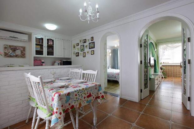 (3)多個功能區一體,70㎡的小面積沒有獨立的空間規劃多個功能區域,所以演變出一個大空間里包含客廳餐廳或客廳餐廳廚房的一體結構,以珠簾或矮墻等作為簡單的空間隔斷。若是經常下廚的家庭還是需要設計一個封閉的獨立廚房,以解決油煙問題。
