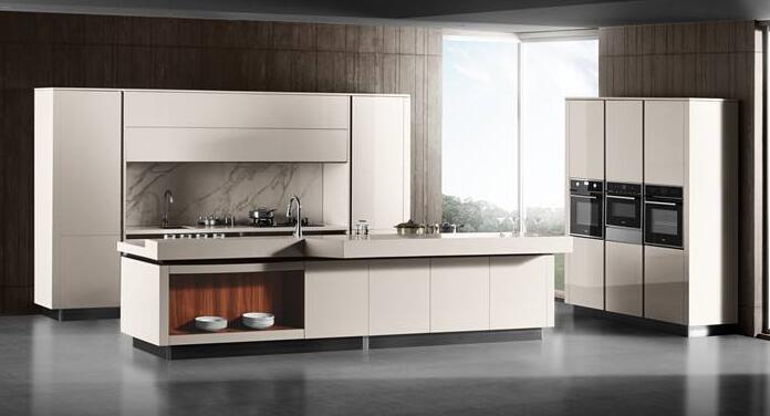 本款金牌櫥柜主要由防潮板、水晶和人造石組成,門板采用密度板為基材,環保烤漆,拉絲鋁拉絲,與門板融為一體,吊柜與吊柜深淺搭配更具層次感,金牌櫥柜價格也比較便宜。不過這款金牌櫥柜不要讓化學物品接觸金牌櫥柜人造石臺面,以免人造石臺面變色。