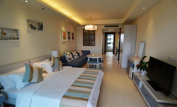 (2)功能:除了風格,功能也是客臥一體中不可忽略的一個部分。雖然做成了客臥一體,但是客廳和臥室的功能還是不同的。客廳主要是接待客人使用的,而臥室則是休息的地方,所以即使是客臥一體的設計,還是要將兩者做出區分。比較簡單的方法就是客廳使用冷色調的顏色,臥室使用暖色調的顏色。