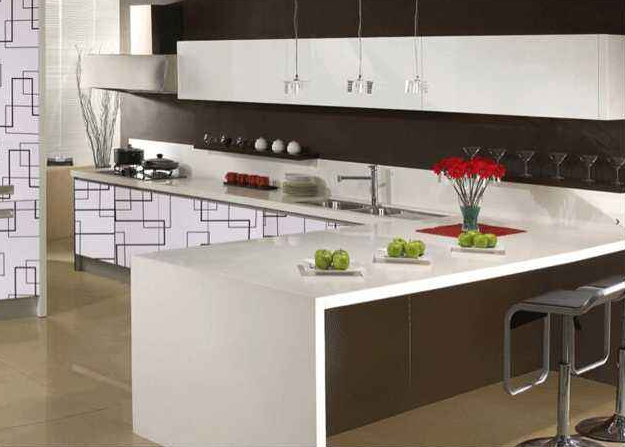 3、水盆兒、擋板與臺面的一體化使整個臺面的整體感非常好,而且沒有任何縫隙,不會滋生細菌;