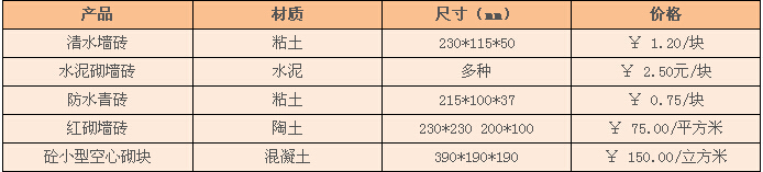 ? ? ? 砌墻磚的磚頭是一種長方體石料,用泥巴燒制而成,多為紅色,俗稱“紅磚”,也有青色“青磚”.紅磚與青磚的制作工藝相似,將塊狀粘土進行煅燒,煅燒的場所稱為磚窯.中國標準粘土磚的尺寸為240×115×53mm,這一尺寸的目的是為了保證磚的長寬高之比為4:2:1(包括10mm的灰縫寬度).磚墻的厚度多以磚的倍數稱呼,由于磚的長度為240mm,因此厚度為一磚的墻又稱“二四”墻,厚度為一磚半的墻又稱“三七”墻,厚度為半磚的墻又稱“一二”墻.