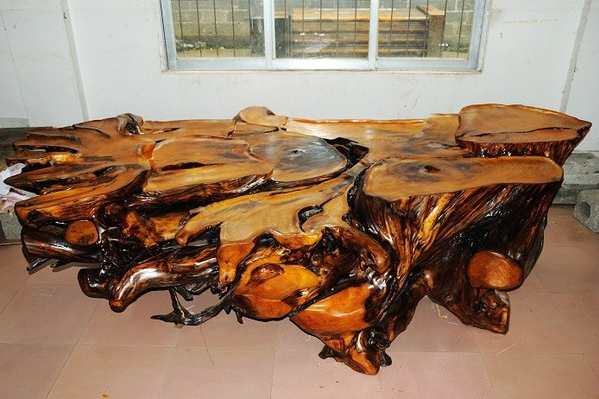 2、古銅色:涂上類似于紅木的仿古色,展現根雕茶幾古樸的韻味。