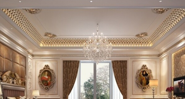 石膏線與若與歐式房間墻壁延用同種樣式,可以更好地凸顯房間的全局感官,使得吊頂與墻面交相輝映,強調房間的線條感。