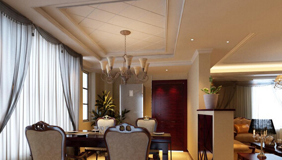 凹凸式吊頂是指表面具有凹入或凸出構造處理的一種吊頂形式,這種吊頂造型復雜、變化多樣、層次感強,適用于廳、門廳、餐廳等頂面裝飾。它常常與燈具搭配適用。