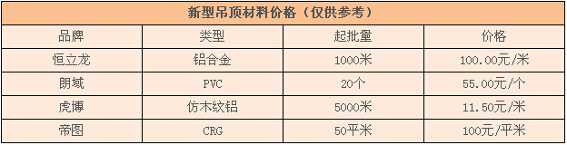 目前市場主要吊頂材料,產品從三四十元到幾百元,客戶分辨差,很容易被偷梁換柱。價位低的鋁扣板容易腐蝕變色。鋁板易結凝露,導熱率高。