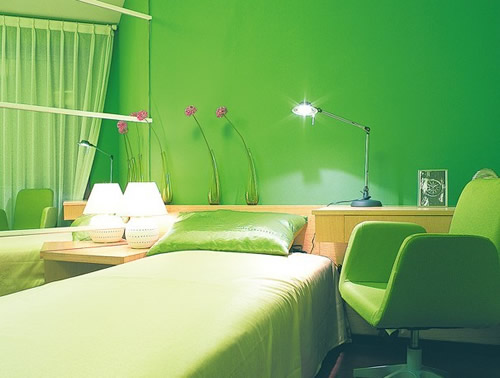 4、紅色:綠色也可以配紅色。當然,得配那種淡素色的紅色,不要大紅, 大自然的顏色就是綠紅,這樣配起來相當清閑,自然。