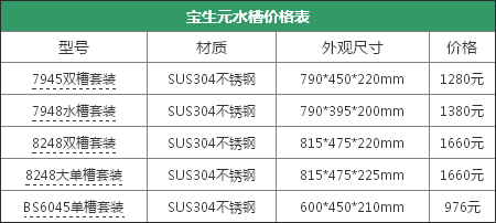 小編整理了部分熱銷的寶生元水槽價格給大家參考: