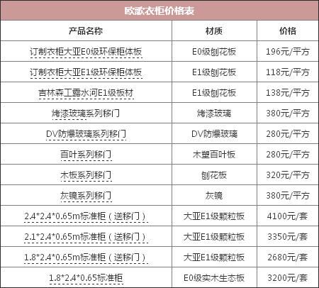 消費(fèi)者最關(guān)心的還是歐歌衣柜賣的貴不貴,那么下面小編就整理了部分歐歌衣柜價格表供你參考: