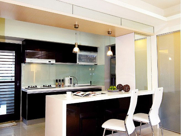 家里面的廚房吧臺可以算是家居里面的一個比較特殊的地盤了,這個吧臺不僅要在使用功能上凸顯它的價值,還要在視覺上給人以沖擊,所以不能將吧臺做的那么默默無聞的樣子,要讓吧臺成為家里一道亮麗的風景線。因此燈光設計就顯得很重要了,酒吧的效果要做出來,變幻莫測的感覺,如醉如癡的感覺,暖和柔美的感覺要突出一些。另外燈具的設置一般采用嵌入式的,既節約了空間,有顯得簡潔大方。