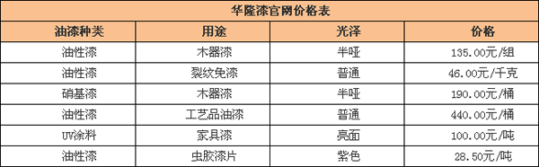 由于目前在網絡上幾乎沒有關于華隆漆價格信息,因此小編在這里為大家搜集的一部分,分享給大家用作參考: