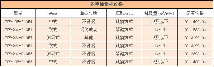 能率油煙機是能率(中國)集團旗下廚電產品,致力于節能環保產品的開發,雖然燃氣熱水器是其主打產品,但是其油煙機產品繼承了熱水器質量過硬的特點。能率油煙機款式分為有歐式油煙機、中式油煙機和近吸式油煙機,產品系列齊全。