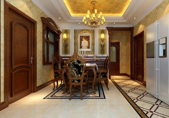 歐式餐廳的環境小,所以其背景墻比較適合歐式古典奢華風,可以選擇古典實木型的餐桌來搭配,然后燈光為黃色居多,營造西式的用餐浪漫。而現代歐式風格相對比較純潔,背景墻很多一金色、棕色等色澤,歐式古典油畫、壁畫都是必不可少,很多以鎏金的壁紙裝飾也是很不錯的效果。
