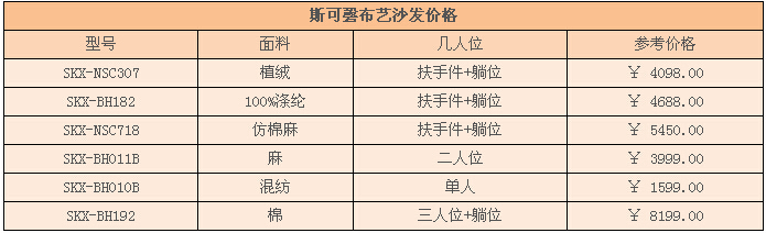 斯可磬布藝沙發整體上不錯,無論是材料、設計方面,還是顏色搭配方面以及舒適度方面都很好。特殊的表面護層耐臟耐洗。斯可磬布藝沙發價格比較高,一般都在四五千元左右。