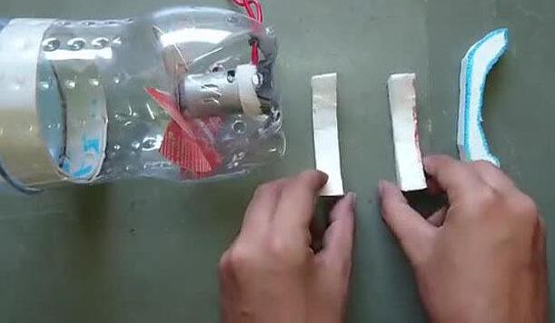 (4)將刷子安裝在挖好孔的肥皂盒內(nèi),兩端彎折。這時可以試著移動一下刷子看是否能夠靈活的轉(zhuǎn)動。