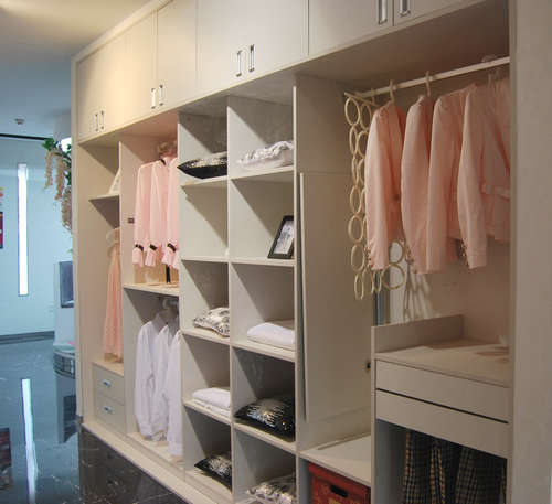 宜家PAX 帕克思衣柜是房間隔斷的能手。宜家將兩個(gè)100 cm的衣柜放在兩個(gè)50 cm的衣柜中間來(lái)完成房間隔斷,形成的步入式衣柜可放置大量衣物、鞋子和配件。如果在門(mén)板上使用門(mén)簾,不僅花費(fèi)少,占用的空間也小。在緊靠的墻壁上,您可以安裝掛鉤和衣架,掛著常常會(huì)被扔在椅子上但其實(shí)不算太臟的衣服。滑軌可用來(lái)放置次日要穿的衣服。