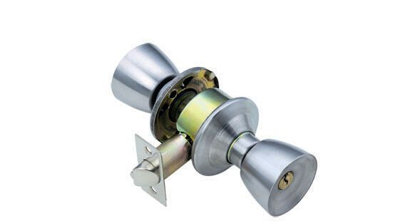 球形門鎖:內、外執手(鎖柄)為球形,用于安裝在木門、鋼門、鋁合金門及塑料門上使用的門鎖.