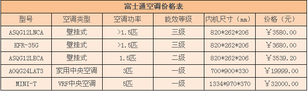 富士通空調(diào)怎么樣之——空調(diào)配置: