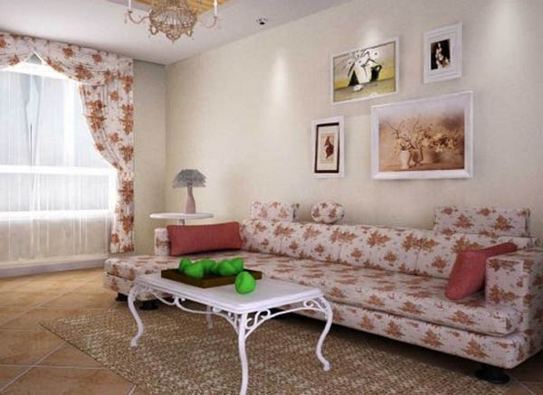 家具多以白色木紋家具,因為木紋家具采用最天然的木材,紋理清晰,給人一種大自然的感覺。當然也可以在家具上面雕刻一些花鳥蟲魚等圖案,或者自然之景也是可以的。而還有一個極其重要的家具,譬如沙發,則應該選用布藝沙發,它給人溫暖舒適的感覺,再以碎花圖案裝飾,則有一種春暖花開之感。