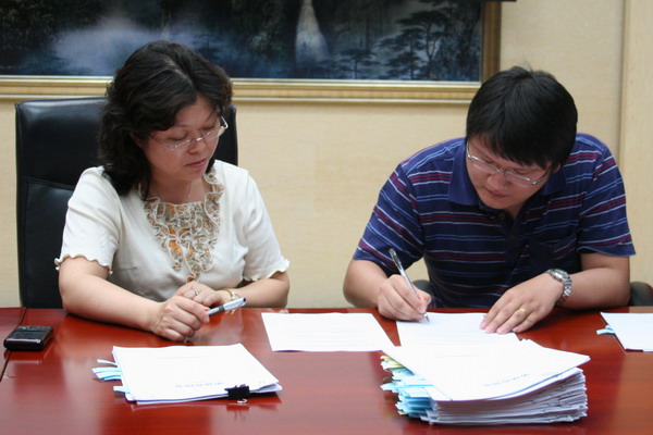 6、業(yè)主審閱無(wú)誤后,簽字蓋章,再交給銷售人員拿去財(cái)務(wù)處核定后蓋合同章,法人章,騎縫章。