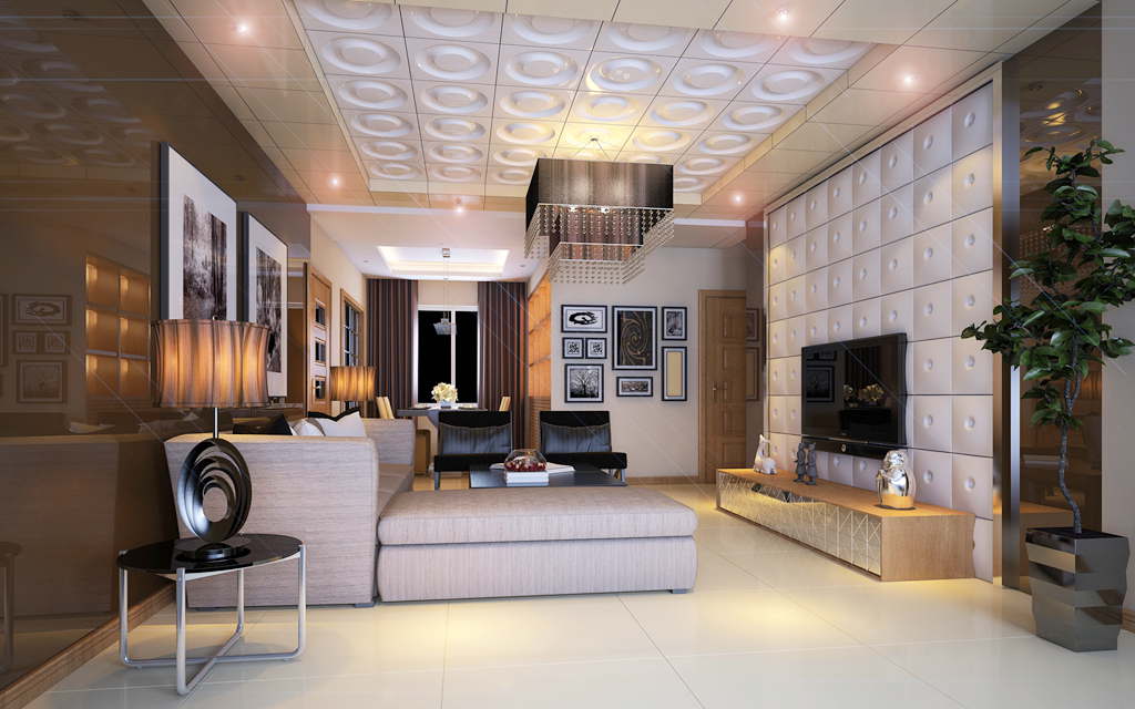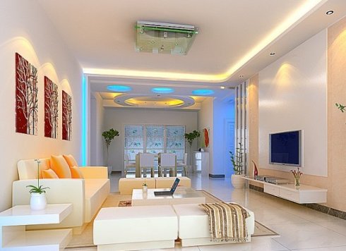 這種設計適合原戶型采光不足,可以在吊頂的四邊木槽中設計日光燈,燈光可以彌補采光的缺陷。從天花板上折射出來的光線對眼部沒有傷害,且日光燈射出的光線與太陽光最為接近,對于客廳來說非常合適。