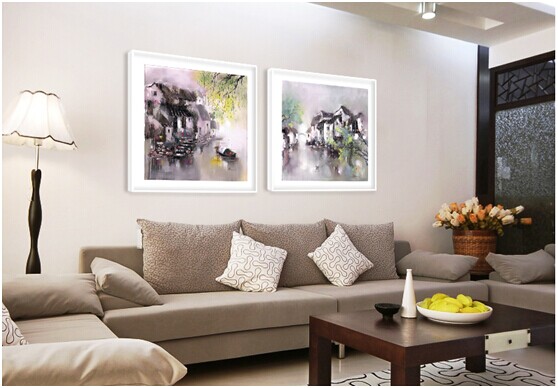 中式客廳裝飾畫采用國畫作為裝飾,以山水畫、花鳥畫、水墨畫居多,可以陶冶情操,提高審美。